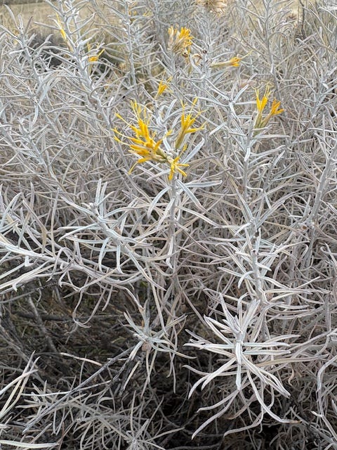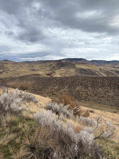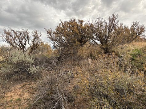 Indicator species, like the bitterbrush, rabbit brush, and sage brush, are plants I look for. When I see them, I am heartened. Here they are - an area where indicators thrive. And as much as I would love to rip out the tumbleweeds, they were just get replaced by more seeds, unless we are willing as humans to hand replace them with native plants.